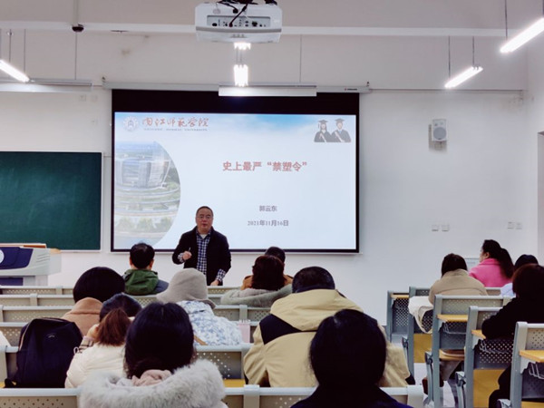11月22日下午,文学院组织全体教职工专题学习党的十九届六中全会精神。学习会由党总支副书记(主持工作)周艺主持。