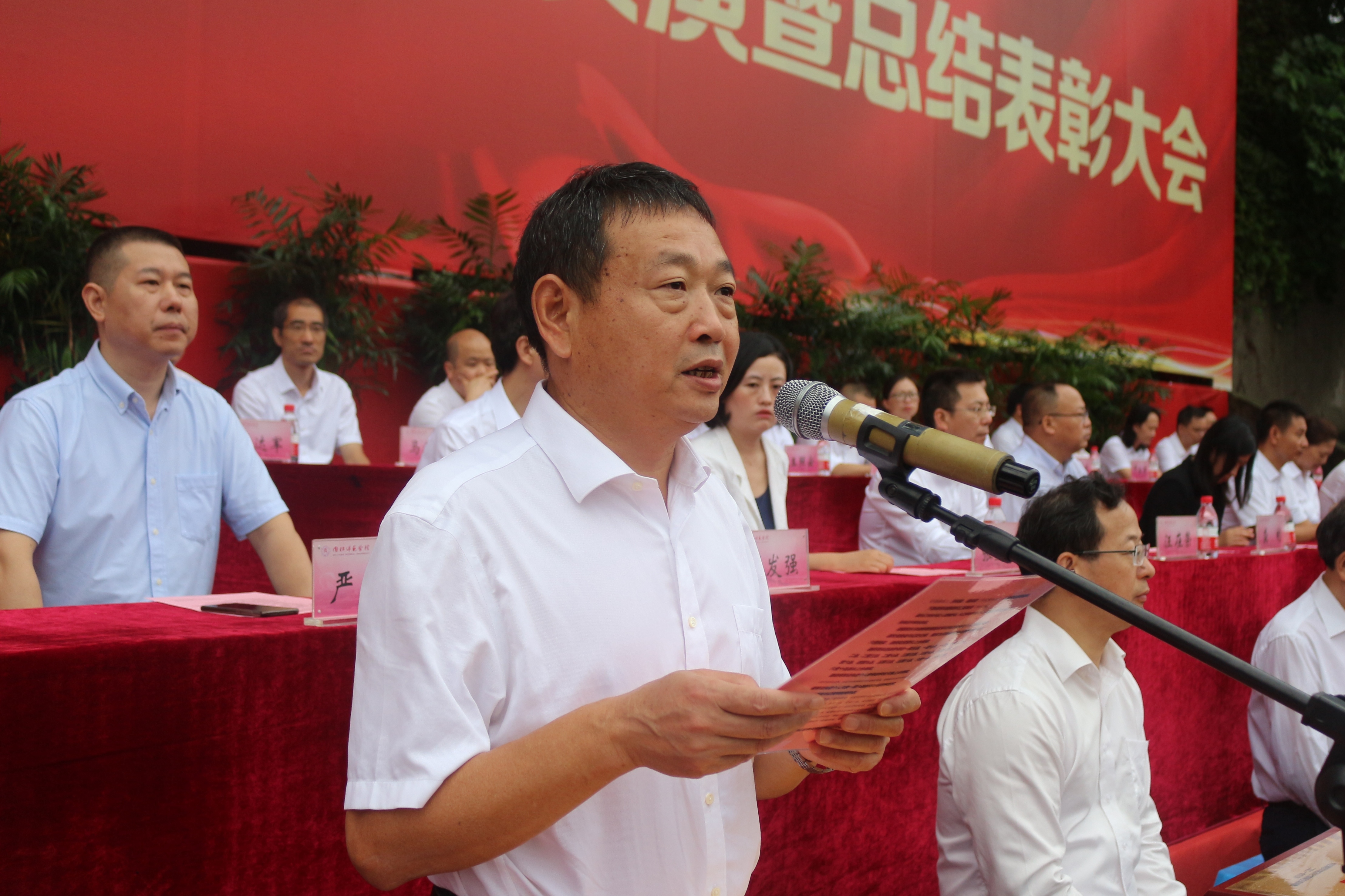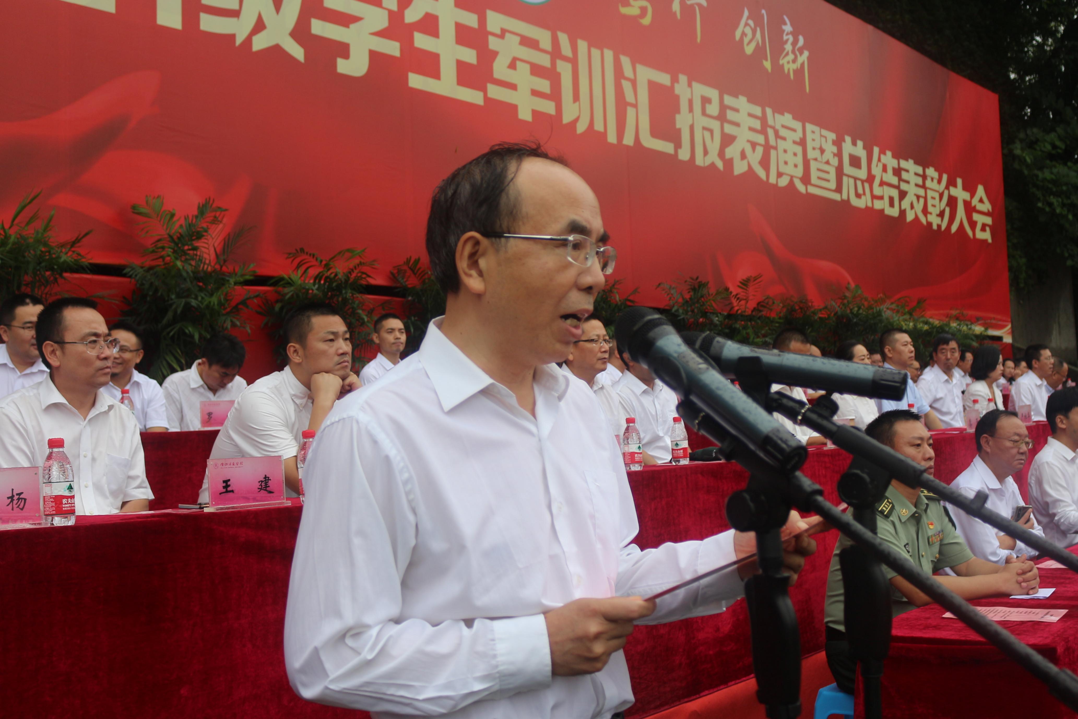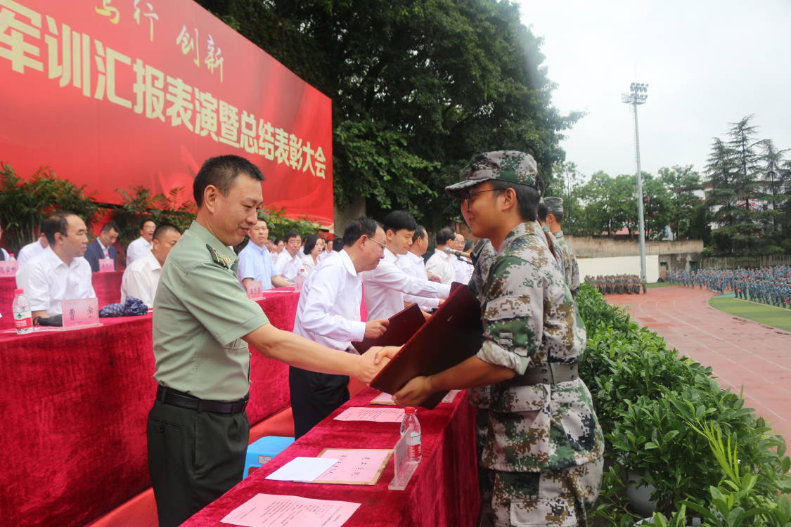 汇演结束后,副校长李益彬宣读了此次军训先进集体与先进个人的表彰决定,并由参会领导为军训先进集体和个人进行颁奖。最后,校党委副书记黄辉教授作总结发言。其中他表示,军训旨在磨砺大家意志,提升综合素质,希望同学们在接下来的学习和生活中能继续发扬军训中培养的优良作风,守住求知好学的优良品质,铭记我校“明德、博学、笃行、创新”的校训,肩负理想,奋勇拼搏。