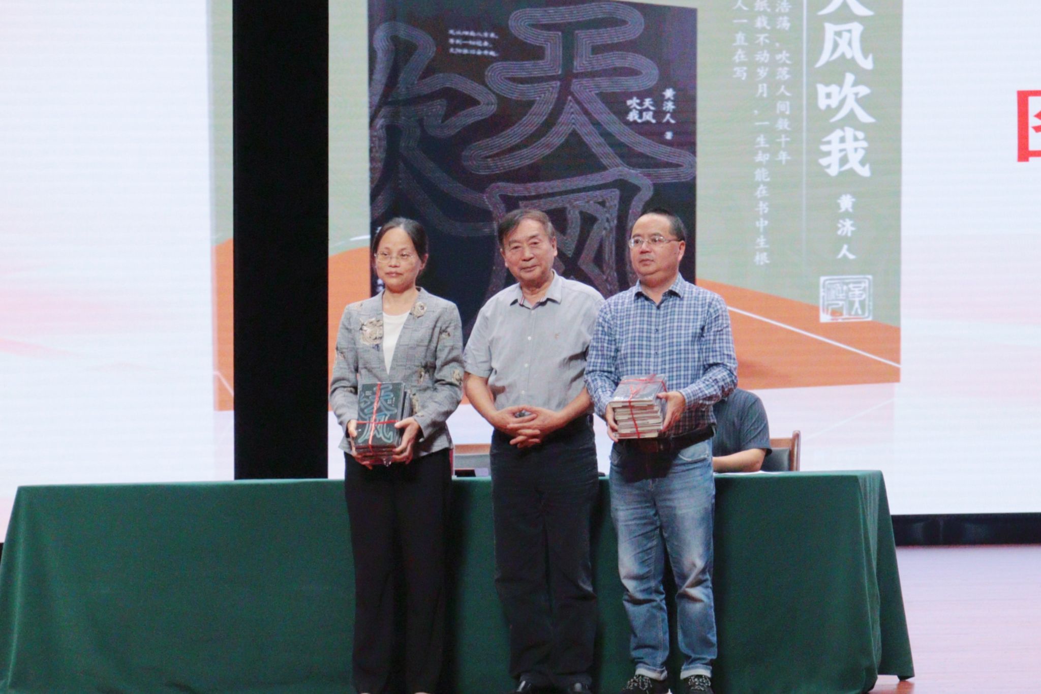 讲座尾声,黄济人向文学院和图书馆捐赠书籍《天风吹我》,这批书籍此后也将成为学校传承抗战精神、厚植家国情怀的生动教材。