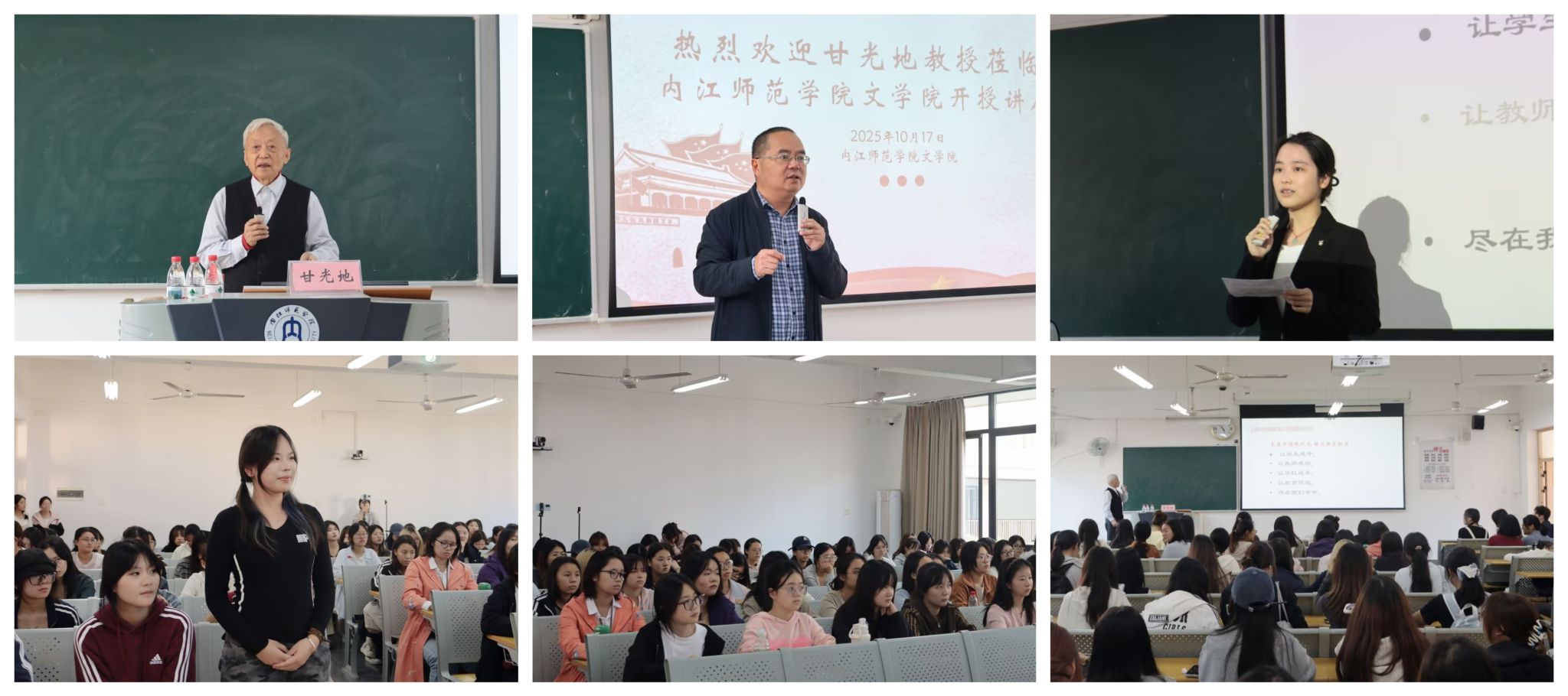 为深入贯彻推进习近平新时代中国特色社会主义思想,将“教育家精神”嵌入师范生培养全过程,帮助我院学子筑牢教育信仰、涵养教育情怀、提升职业胜任力,我院于10月17日下午3点在明德楼B区302教室举办以“教育家精神与未来职业规划”为主题的专题讲座。本次讲座特邀我校中文专业61级杰出校友、内江市诗词楹联学会名誉会长甘光地先生担任主讲嘉宾。