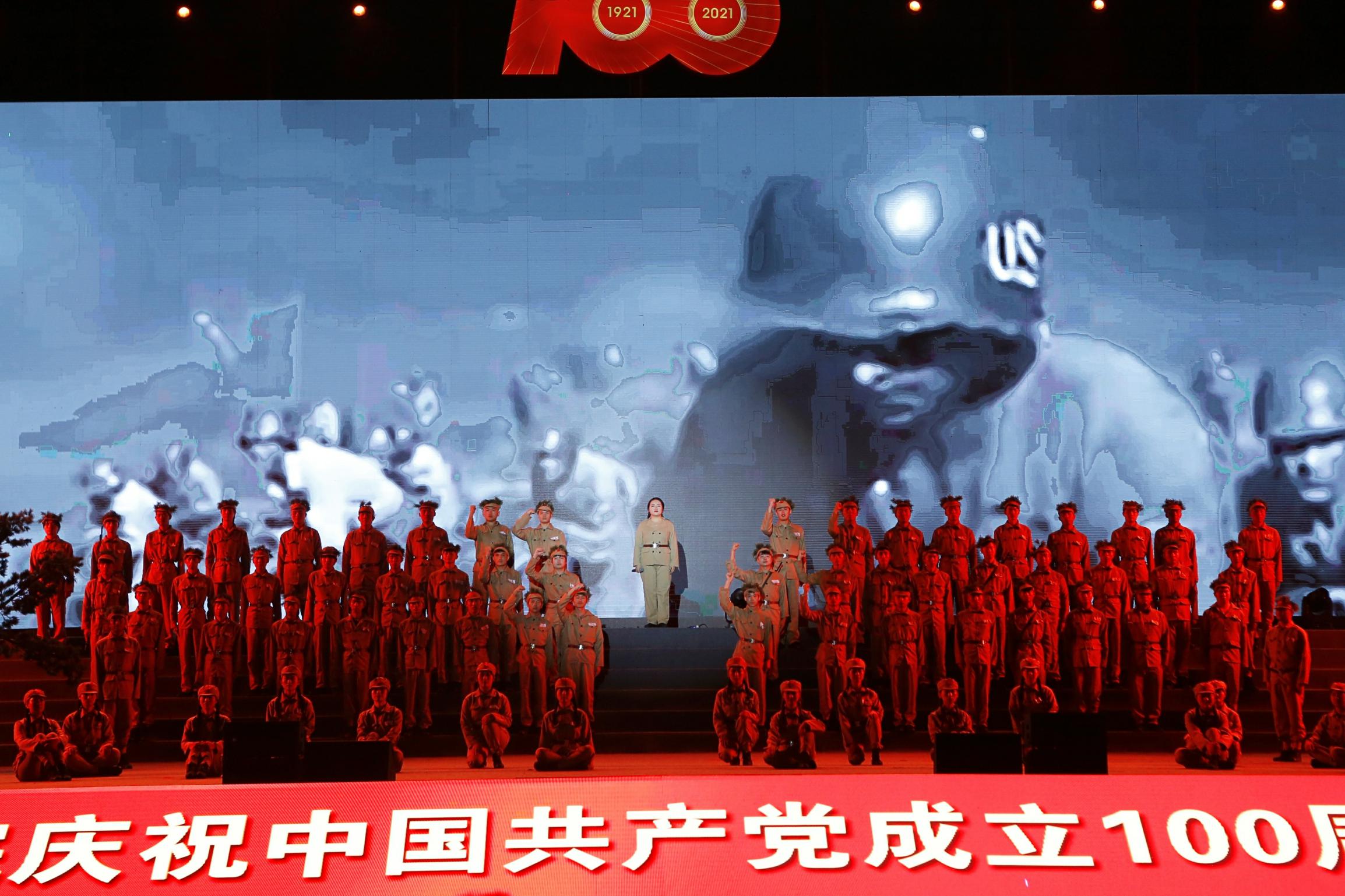 “唱支山歌给党听,我把党来比母亲”。文艺晚会在《唱支山歌给党听》激情澎湃、自信昂扬的歌舞表演中拉开帷幕。此次晚会分为浴血荣光、艰苦创业、伟大变革、时代新篇四个篇章,通过舞蹈、歌曲演唱、情景表演等节目的完美展示,全方位立体式地再现了中国共产党成立百年来的艰辛历程和煌成就。第一篇章“浴血荣光”在《星火燎原》情景表演中徐徐展开。话剧《血雨黎明》通过对江姐英勇无畏的歌颂,生动讲述了中国共产党人的初心和使命。披荆斩棘,昂扬精神力量。第二篇章“艰苦创业”深情演绎了新中国成立后一代代建设者始终与共和国同呼吸、共命运的坚守与担当。其中,我院演唱的《英雄赞歌》,讴歌了英雄儿女浴血奋战、保卫祖国、保卫中华的峥嵘岁月,让我们更加珍惜来之不易的幸福生活。同时也激励我院学子保持牢记使命、奋勇拼搏的爱国热情。第三篇章“伟大变革”,艺术地再现了中国社会主义改革开放和现代化建设中中国共产党引领中国人民建设中国特色社会主义取得的巨大成就。第四篇章“时代新篇”,讲述了全国各族人民以习近平新时代中国特色社会主义思想为指引,以信仰之光照亮前行之路,初心如磐,接续谱写新的历史篇章。整场演出异彩纷呈,高潮迭起。最终,晚会在全体师生起立合唱《走向复兴》的激越豪迈的歌声中结束。