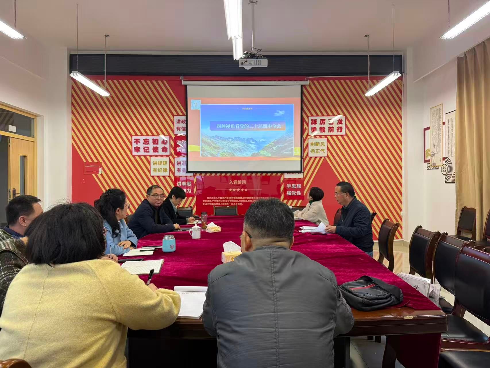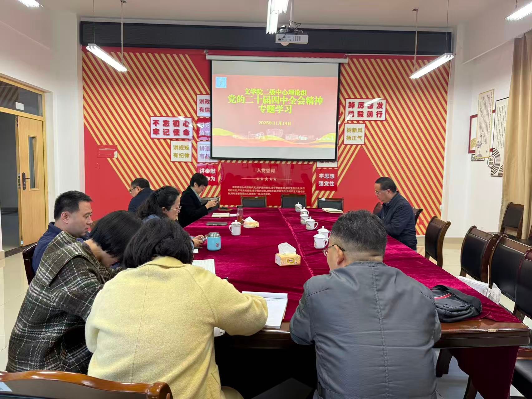 2025年11月14日上午,文学院二级中心理论组在弘文楼506会议室举行党的二十届四中全会精神专题学习会。党委书记周艺主持,文学院全体二级中心理论组成员参加学习。