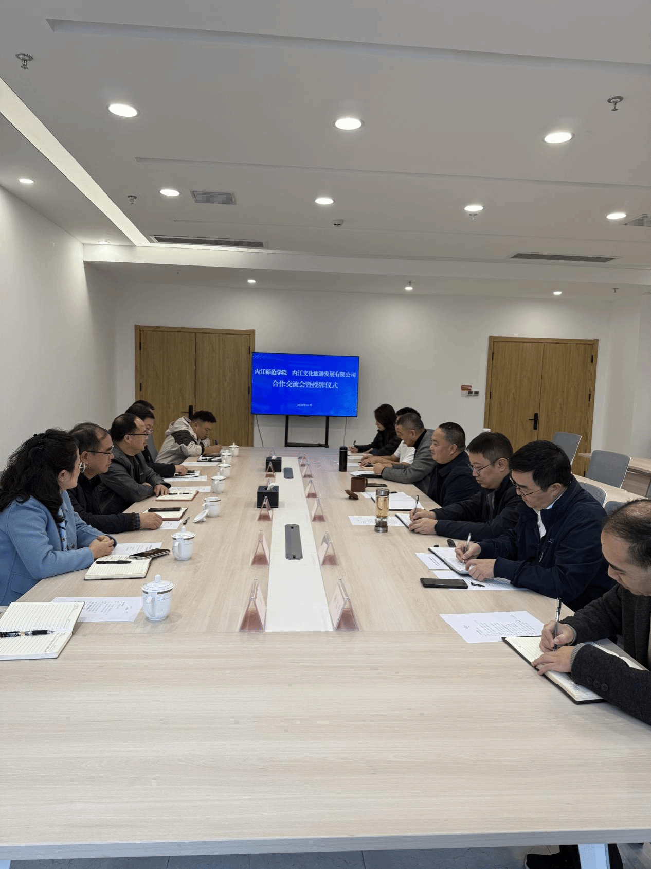 在内江文旅公司座谈会上,公司党支部书记、董事长廖林杰详细介绍了公司的业务版块、发展方向、人才需求等情况,并表示,公司将持续为内师学子提供成长舞台,助力“甜城”文化破圈出海;公司各版块负责人提出了具体的合作意向。文学院副院长(主持工作)于军民、音乐学院党委书记齐永朝等同志分别与内江文旅公司各版块进行合作对接。校企双方就共建数字人文专业、人才联合培养、拓展就业岗位等事项达成了合作意向。