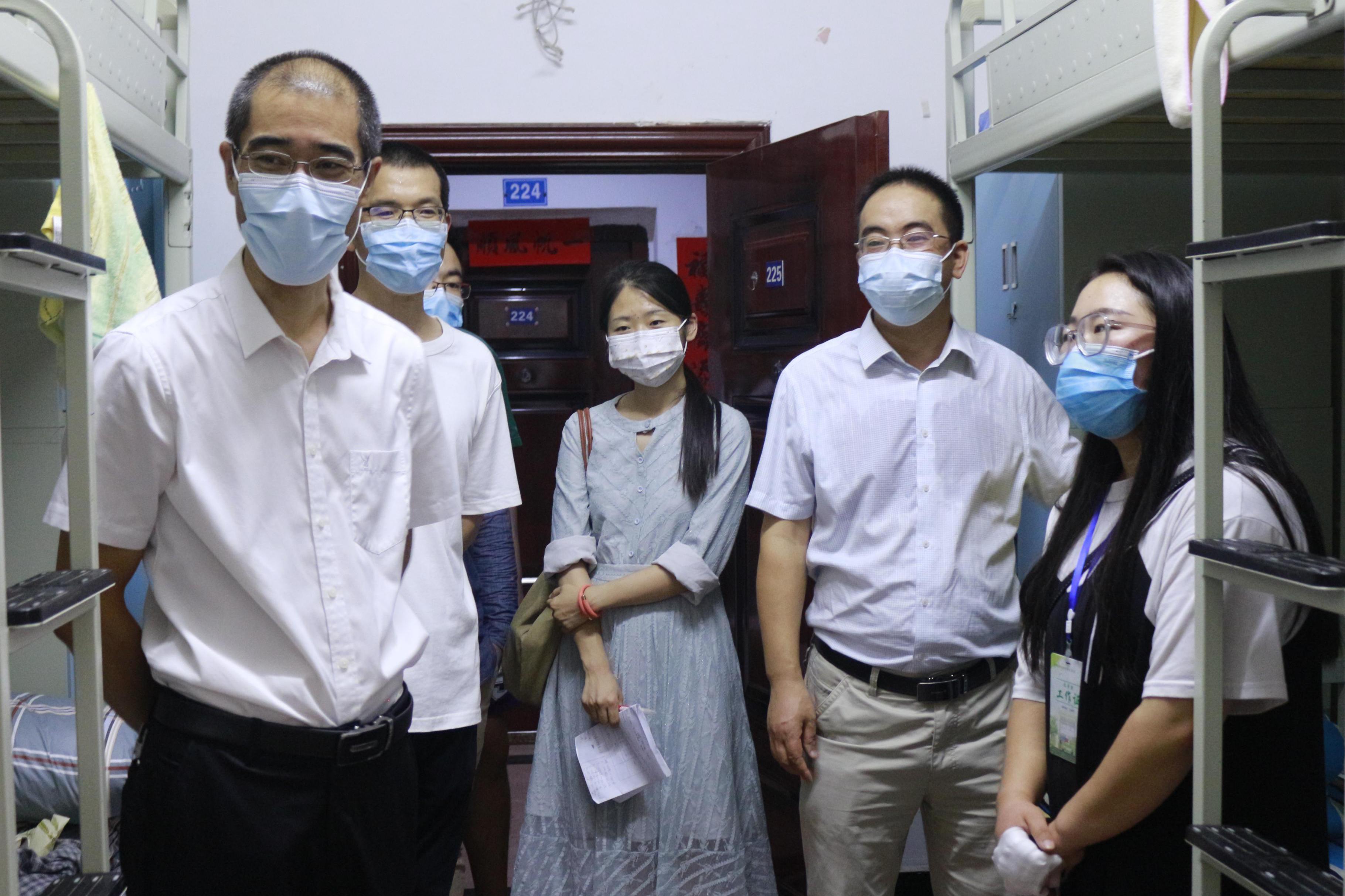为及时了解新生状态,帮助新生适应大学生活,增强新生对学院的归属感,9月5日晚上7点,我院党总支书记李达军,行政负责人马振君,副院长张文彬,党总支副书记刘正丽,团总支书记许小涛,辅导员孙波、汤靓和团总支学生会主席团成员一同走访新生寝室,为2021级新生送去问候与关怀。