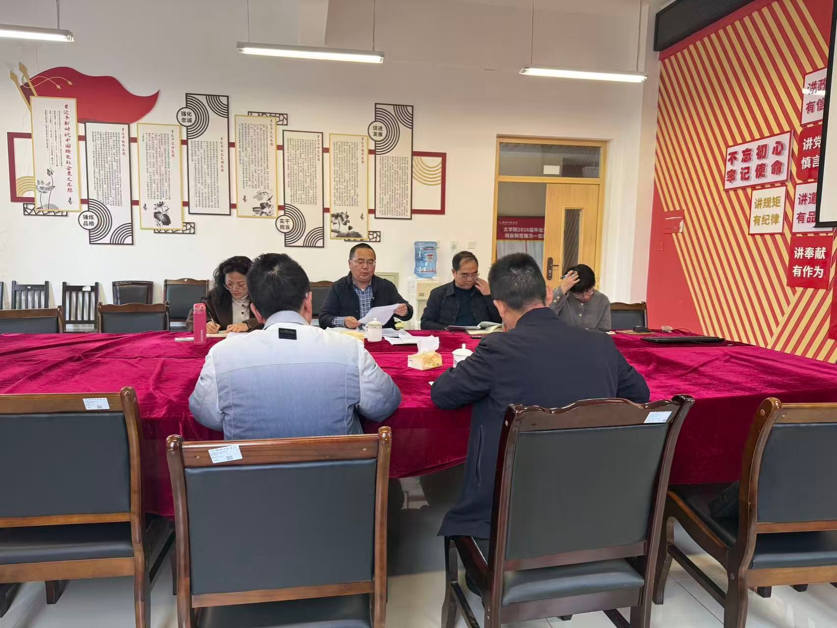 2026年3月3日,文学院党委领导班子召开2025年度民主生活会,学校督导组到会指导,学院党委书记周艺主持会议。