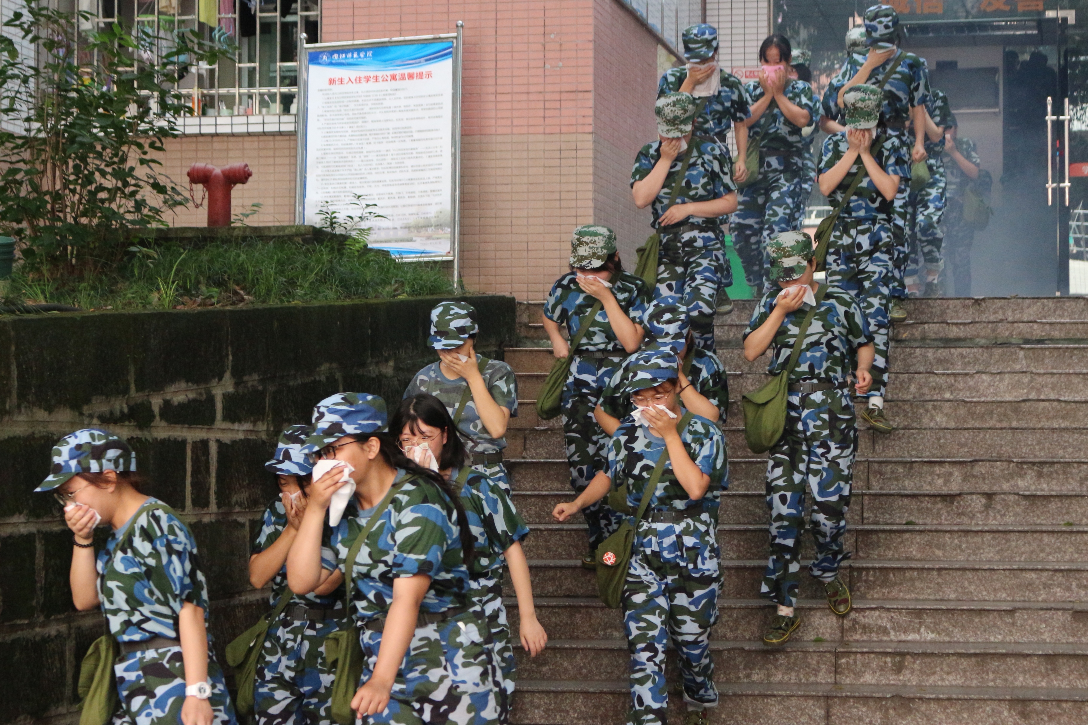 下午3点整,现场指挥人员黄碧东报告演练工作准备就绪后,党委副书记黄辉宣布此次消防安全暨应急疏散演练正式开始。顿时,学生宿舍二十栋浓烟四起,警报随即拉响。同学们在教官和老师的指引下拿起湿毛巾,捂住口鼻,弯腰小步靠右快走,迅速且有序下楼朝西区田径场撤离。与此同时,消防车和救护车迅速抵达现场。消防人员用最快时间展开装备并进行扑火抢险工作。医护人员用担架将“重伤人员”抬上救护车送往最近的医院抢救。随后,总指挥黄辉书记宣布消防进军训暨应急疏散演练圆满结束。