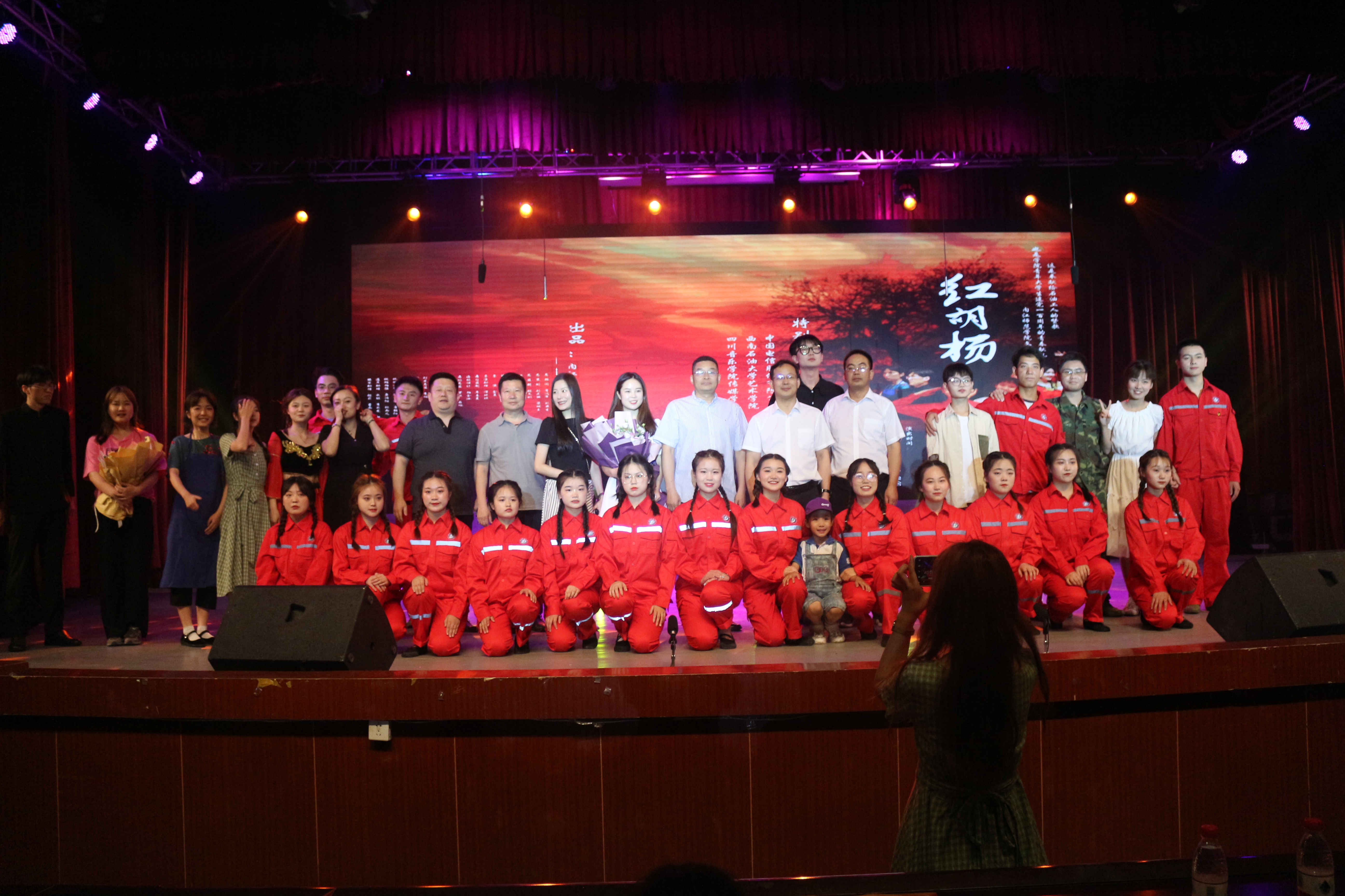 6月6日晚上7点,我院原创话剧《红胡杨》在东区礼堂隆重上演。这是一曲献给石油工人的赞歌,也是青年大学生对建党一百周年的青春献礼。该话剧由我院辅导员金夏担任总导演及编剧,罗琪、程梓航、付茜等25名同学共同参演。我校党委副书记纪委书记史仕新教授及学校其他职能部门领导莅临本次活动。