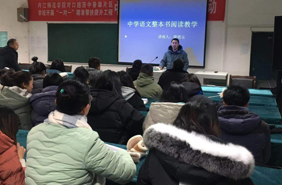 优质课展评活动后,黄全彦教授和梁明玉副教授分别受邀为当地中小学教师做了题为“中小学古诗鉴赏技巧与方法”和“中学语文整本书阅读教学”的专题讲座,深受听课教师好评。