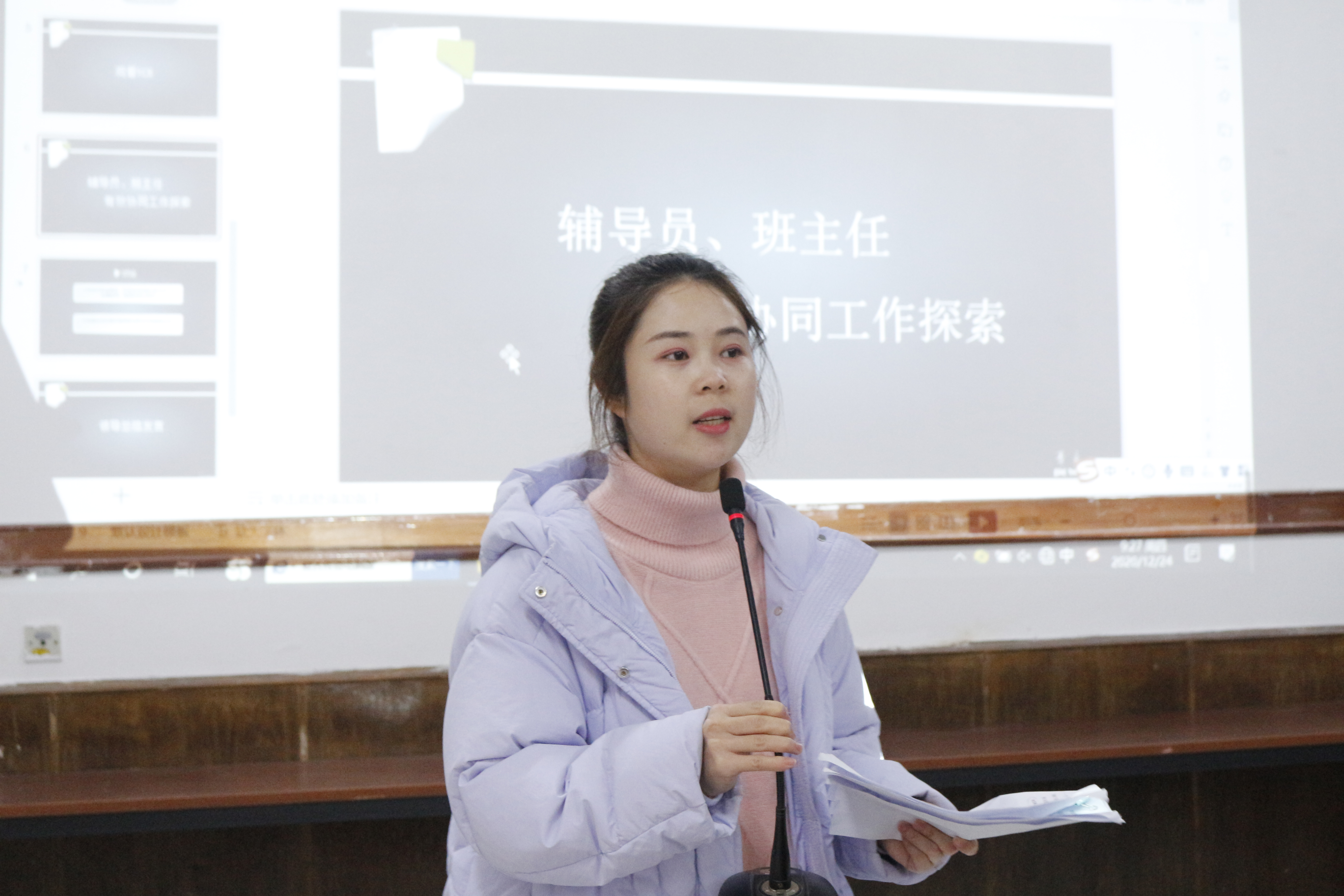 12月24日上午九时,我院与经济与管理学院于外国语学院一楼会议室联合举办以“辅导员、班主任有效协同工作探索”为主题的会议,内江师范学院校团委书记秦亚、学生处处长兰华、学生处副处长黄平,经济与管理学院党总支书记张云、副书记王志萍,文学院党总支副书记刘正丽以及各学院辅导员参与其中。本次会议由我院辅导员金夏主持。