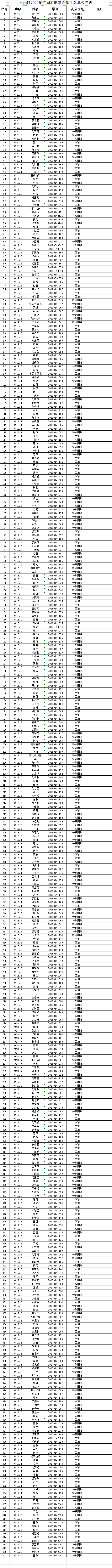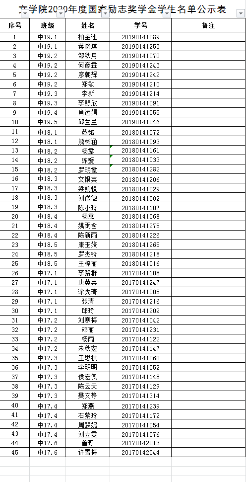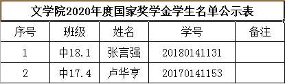 2019-2020文学院国家奖助学金公示名单