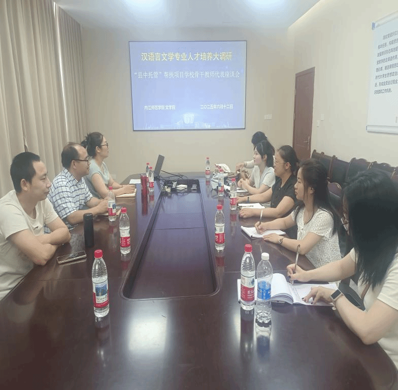 为更好加强校地合作、服务地方基础学校教育教学工作,实践内江师范学院“扎根地方,追求卓越”的办学理念,2025年6月内江师范学院举办了“县中托管”帮扶项目学校骨干教师培训,文学院承担了语文学科分组讨论的培训研讨工作。6月12日上午在行知楼A区313办公室,文学院语文教学教研室老师们和来自资阳市的5位老师就基础教育的高考改革落地情况和文学院人才培养方案进行了充分研讨和交流。