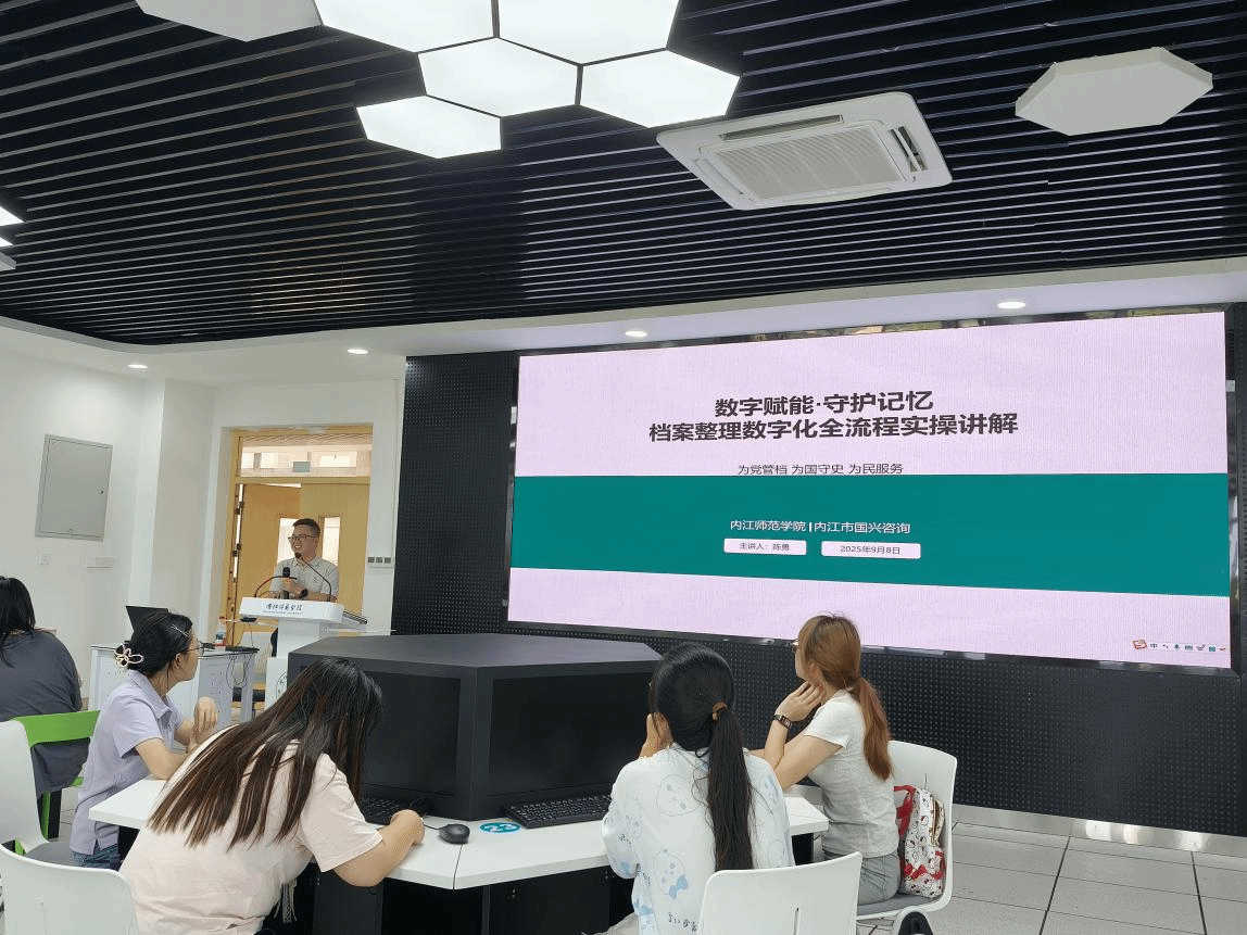 下午2点30分,“数字赋能·守护记忆——档案整理数字化全流程实操讲解”专题讲座在弘文楼402教室举行。本次讲座由陈勇老师主讲。讲座围绕“为党管档、为国守史、为民服务”的宗旨,系统阐述了档案工作的现代发展。讲座内容分为四个板块:在“档案的定义及作用”部分,详细解读了《档案工作基本术语》国家标准,将档案定义为“国家机构、社会组织或个人在社会活动中直接形成的有价值的各种形式的历史记录”;“档案常见类型”介绍了不同载体的档案分类;“档案整理及数字化”重点讲解了数字化处理的技术规范;“保密风险防范与应对”强调了档案安全的重要性。