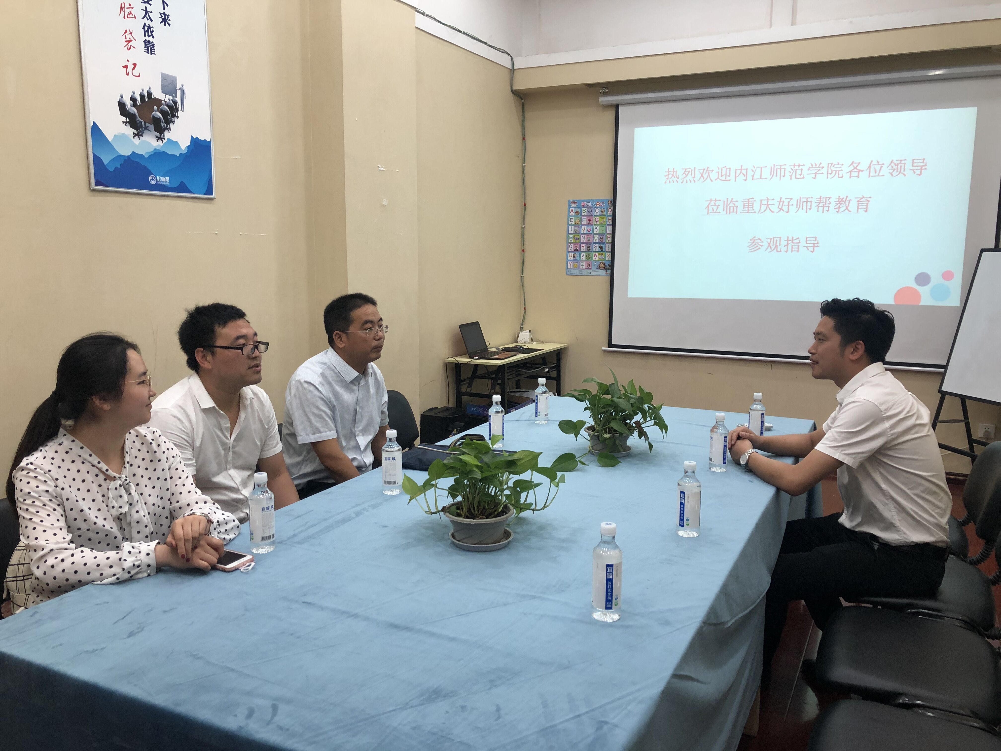 5月22日,文学院党总支书记李达军带领辅导员曾晓芸和2017级班主任刘鹏、米禧一行人对海诺教育集团进行了实地参观了解,并就我院与海诺教育集团的就业合作问题与海诺教育创始人孙老师、教研总监朱昱州、人力资源总监南晨辉、网络部经理何旺等人进行了治谈。