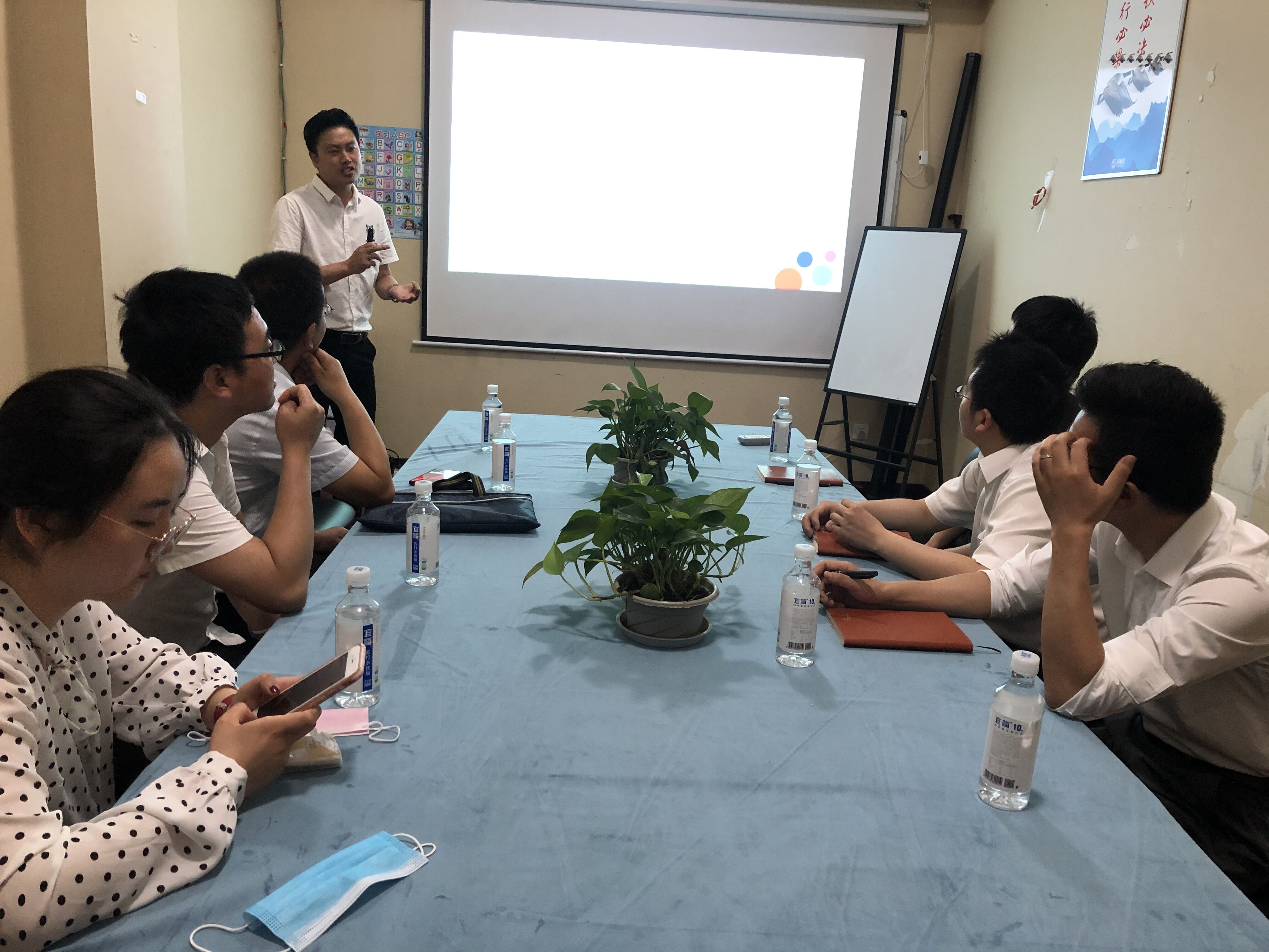 会议伊始,创始人孙老师首先详细介绍了海诺教育自2011年创立至今的发展历程、公司规模、企业文化等。随后,教研总监朱昱州对教研部及新老师培训等方面的工作做了重点讲解。他指出海诺教育教研部的主要职责就是对教师进行培训及磨课,以此提升教师的教学能力和教学质量。同时,教研部一直致力于扎实做好中央大厨房的专项工作,旨在不断培训出更加优秀的、有独特风格的教师,这给我校刚毕业、教学经验匮乏的学生提供了一个很好的提升自我、锻炼自我的平台。