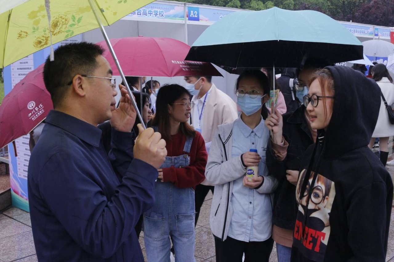 为拓宽2021届毕业生就业渠道,提供更多的就业机会,4月10日上午9点,我校于天一广场成功举办了“智汇天府”公共招聘进校园活动暨内江师范学院2021年春季师范类学生双选会。我校2021届毕业生积极踊跃参加。本次双选会受到我院领导的高度重视。党总支书记李达军,党总支副书记刘正丽,团总支书记许小涛和辅导员孙波亲临现场,关心同学们的应聘情况。