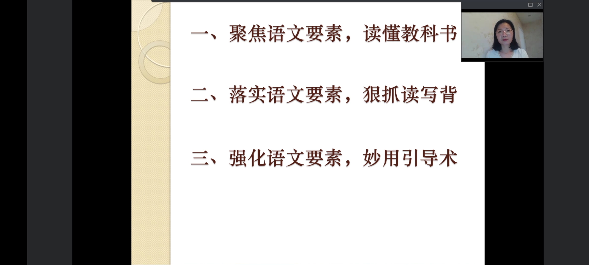 紧接着,温春梅老师先后从三个方面对小学语文教学做出独到深刻的见解,一是聚焦要素,读懂教科书;二是落实语文要素,狠抓读写背;三是强化语文要素,妙用引导数。三个内容围绕语文要素,环环相扣、层层推进。温春梅老师用生动稳重的语言对三个方面进行分析讲解,并结合具体小学语文课本篇目,将阅读教学的理念与实际教学运用完美的融为一体。她强调阅读是语文教学的重点,良好的阅读方法与习惯对小学生学生学好语文、打下良好的语文基础具有重要作用。最后,温春梅老师节选叶圣陶先生的《语文教学二十韵》为本次讲座画下完美的句号。