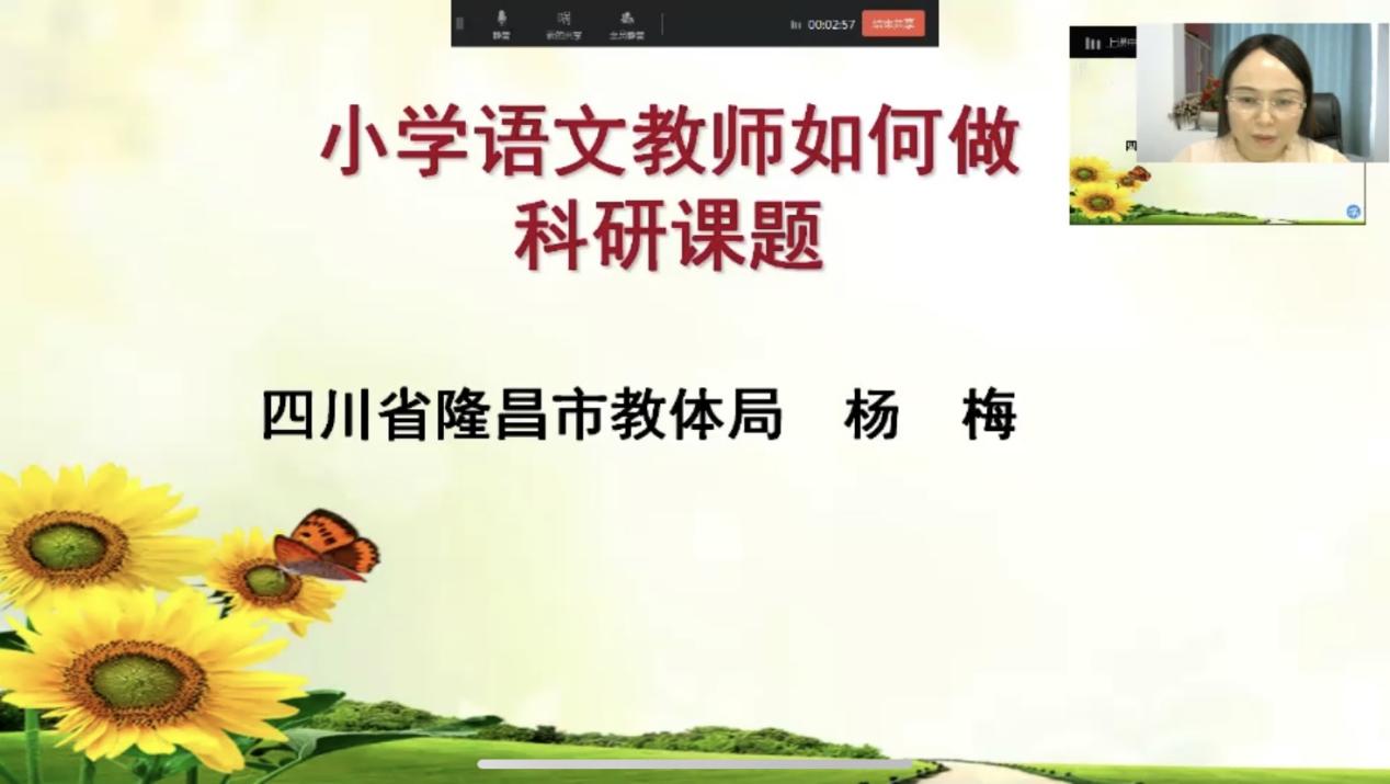 2022年6月21日晚,受内江师范学院文学院的邀请,隆昌市教体局杨梅老师通过钉钉平台开设了关于“小学语文教师如何做科研课题”的线上讲座,与甘孜州石渠县的老师们分享自己的心得与经历。