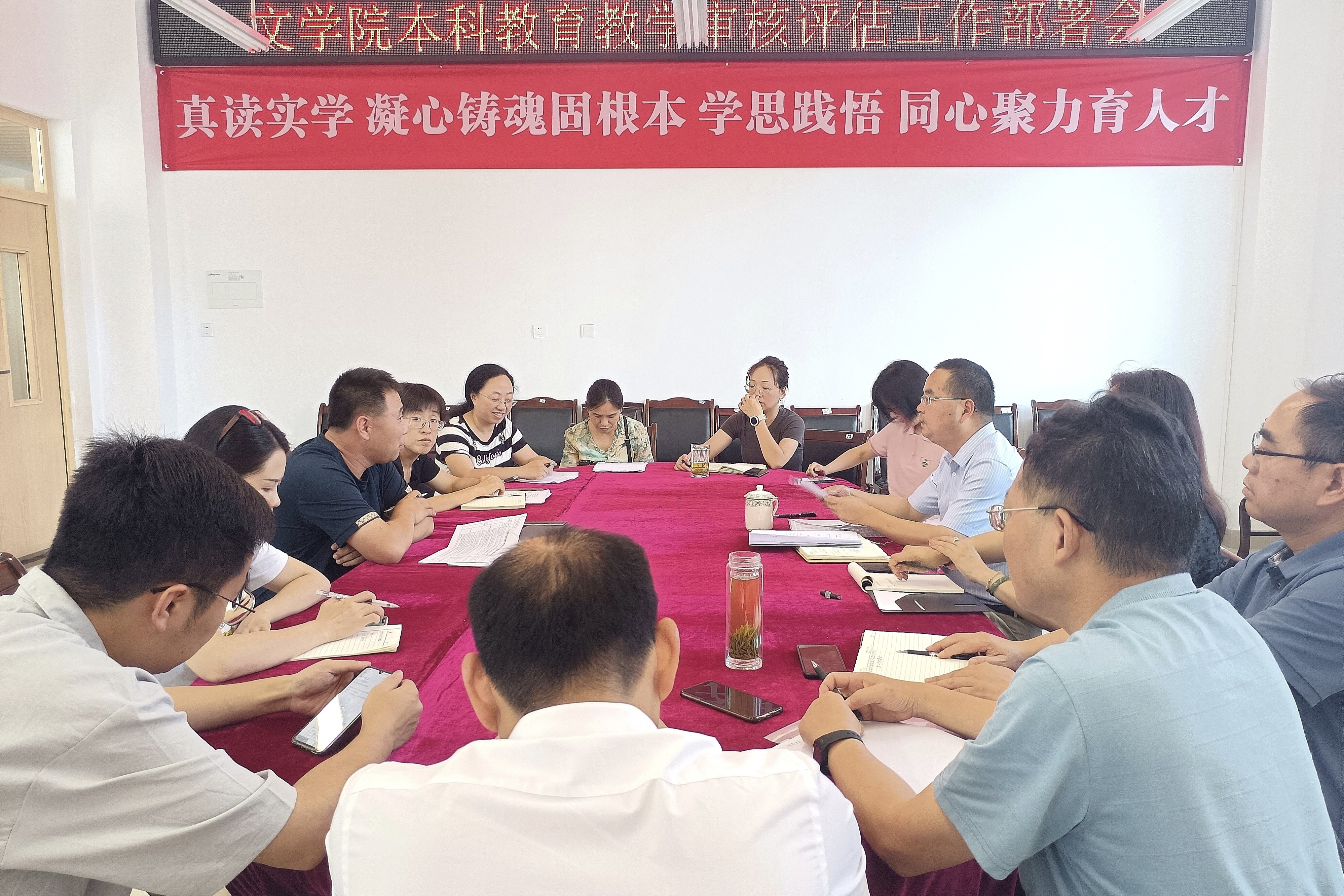 为做好文学院本科教育教学审核评估工作,动员全院师生员工统一思想、形成合力, 2023年6月26日下午,文学院召开传达学校本科教育教学审核评估动员暨工作部署会精神的会议。参加会议的有文学院全体班子成员,教研室主任及三办主任,会议由学院党委副书记(主持工作)周艺主持。